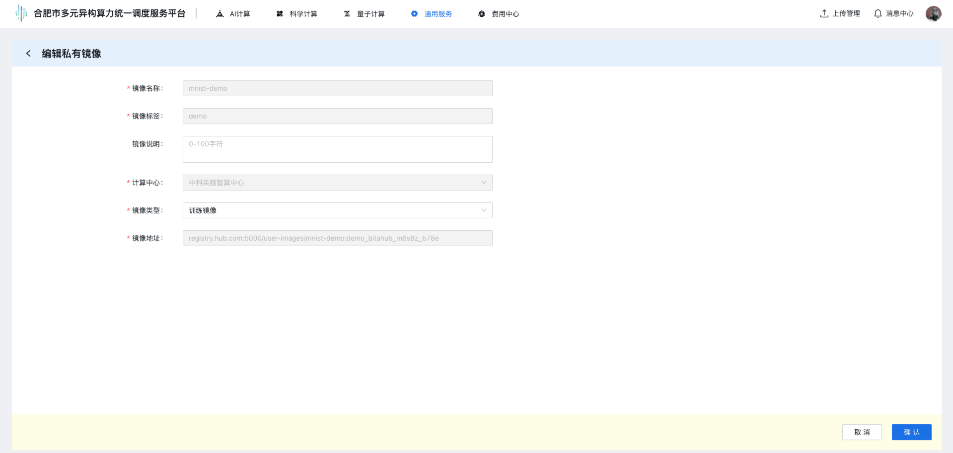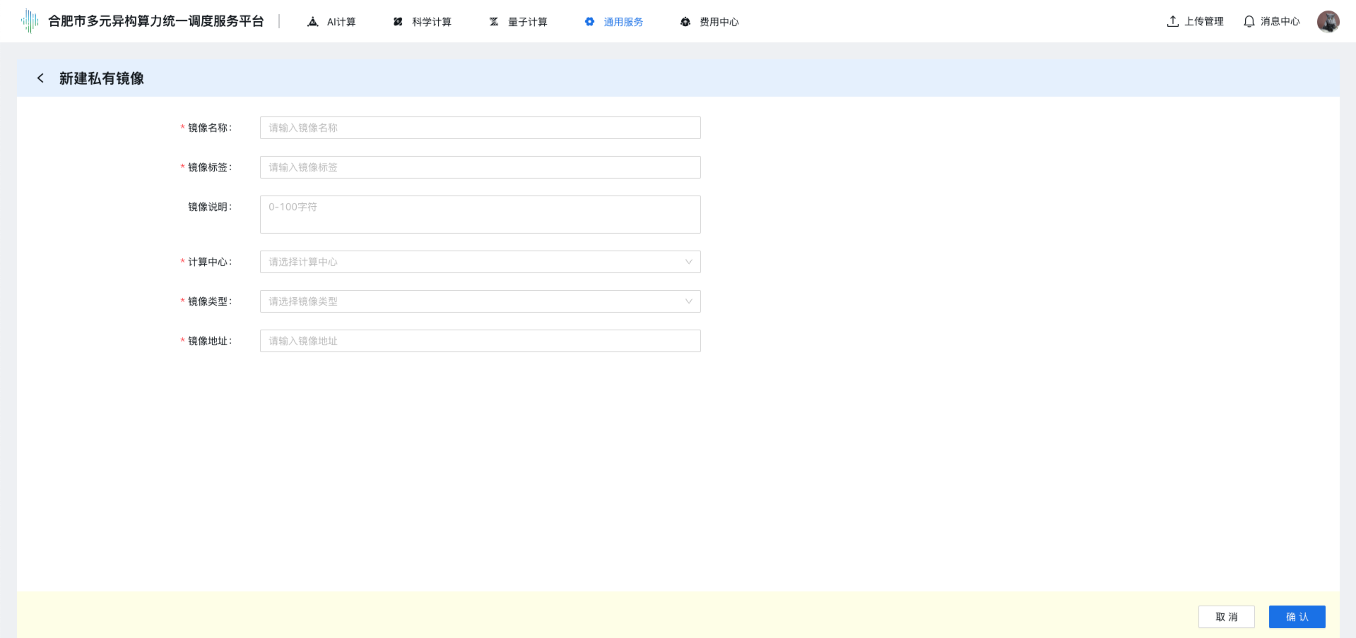 | 计算中心 | 必选 | 选择镜像注册的计算中心 |